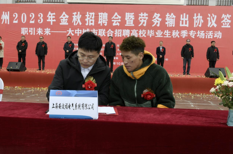为全面贯彻党的二十大精神,坚决落实“稳就业、保民生、促发展”的决策部署,切实帮扶离校未就业高校毕业生、登记失业人员、残疾人等各类重点对象实现就业再就业,为各类企业选聘人才搭建对接平台。10月12日,果洛州人社局在果洛州大武镇格萨尔文化广场举办金秋招聘会暨劳务输出协议签订仪式。州委常委、秘书长生杰出席并宣布开幕,州政府副州长西热出席并讲话,州人社局党组书记、局长孔生福致辞,州四大班子分管领导、州促进就业领导小组成员单位负责人和各县分管领导出席。现场,州外用工企业代表与外出务工人员签订劳务协议。